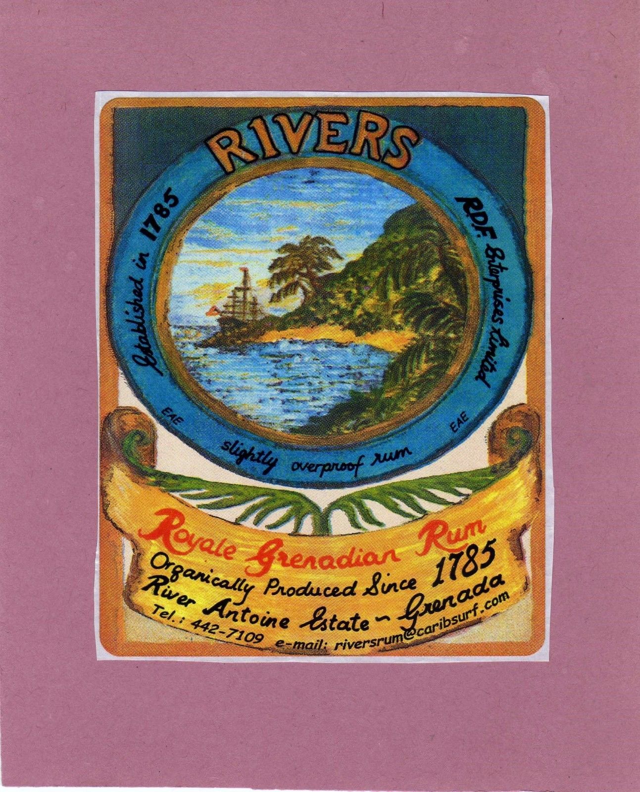 Rivers Royale Grenadian Rum label - River Antoine Estate, Grenada - see scan