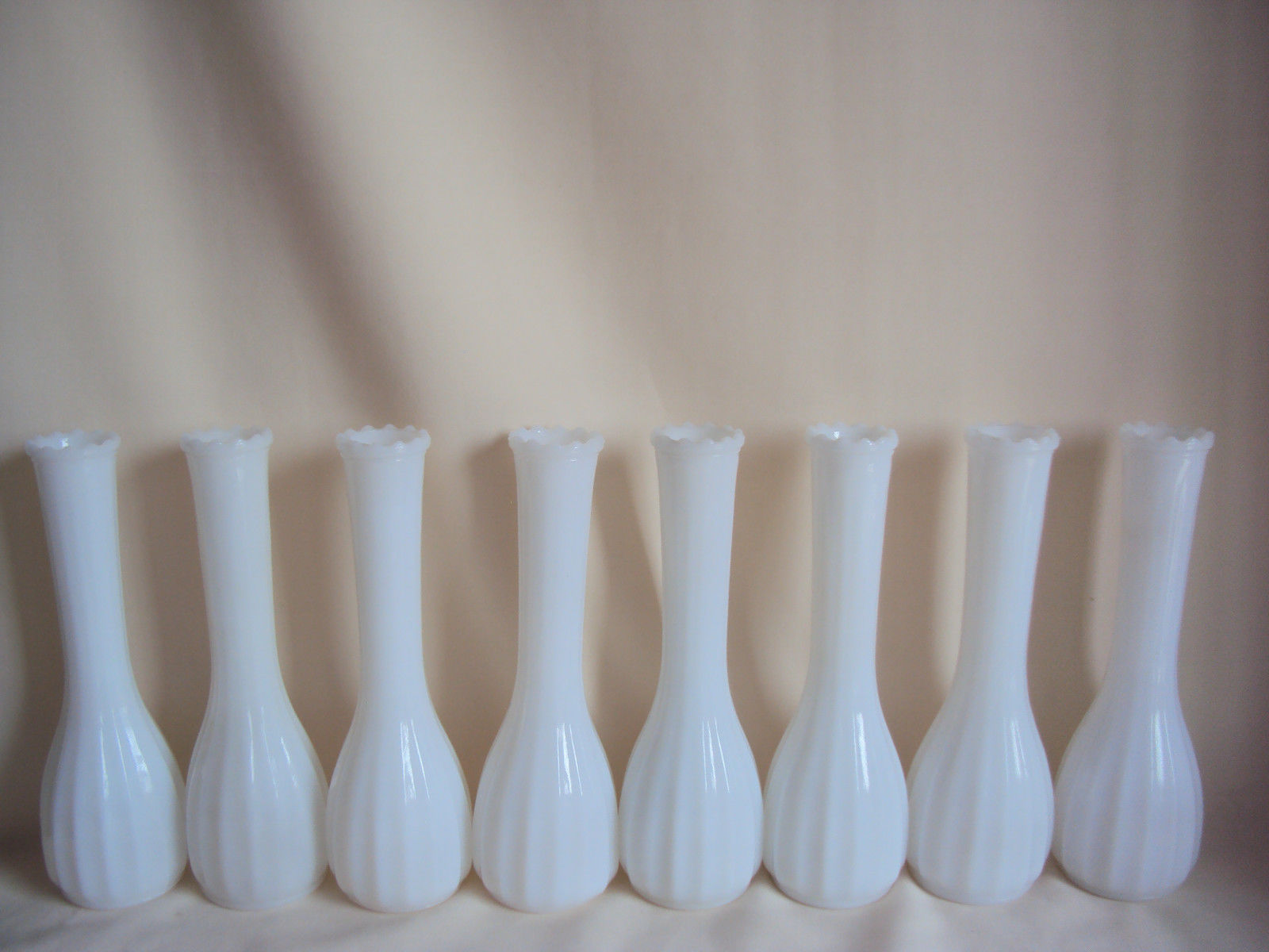 VINTAGE MILK GLASS VASES LOT OF EIGHT 8.75" TALL