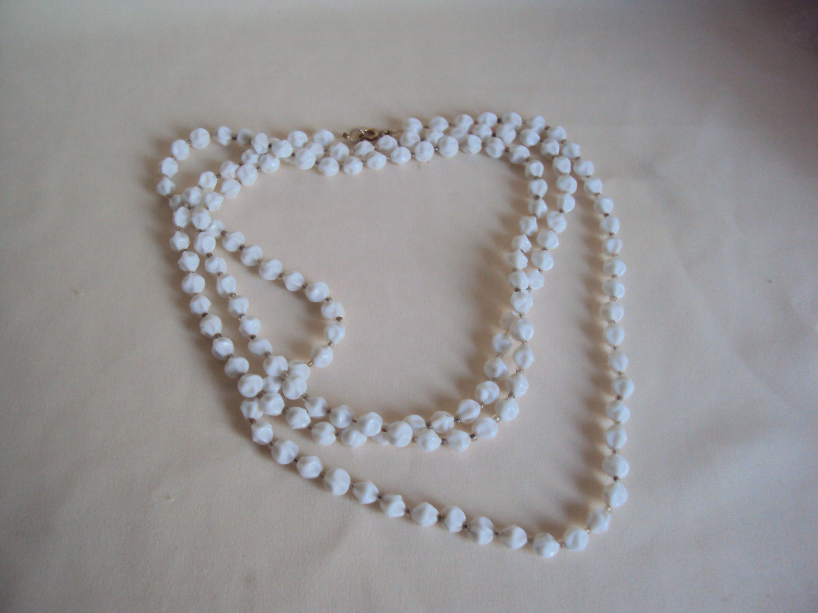 Title (ebay affiliate link): VINTAGE WHITE MILK GLASS AND CLEAR BEADS NECKLACE 60" LONG