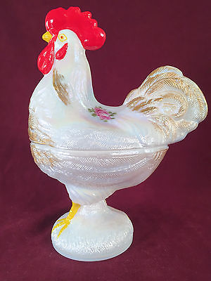 Title (ebay affiliate link): Rosso Westmoreland Painted Milk Glass Mother of Pearl Finish Standing Rooster