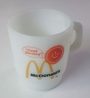 Title (ebay affiliate link): Vintage Fire King White Milk Glass McDonald''s Coffee Mug Good Morning with Sun