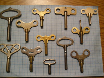 12 ANTIQUE OLD CLOCK KEYS