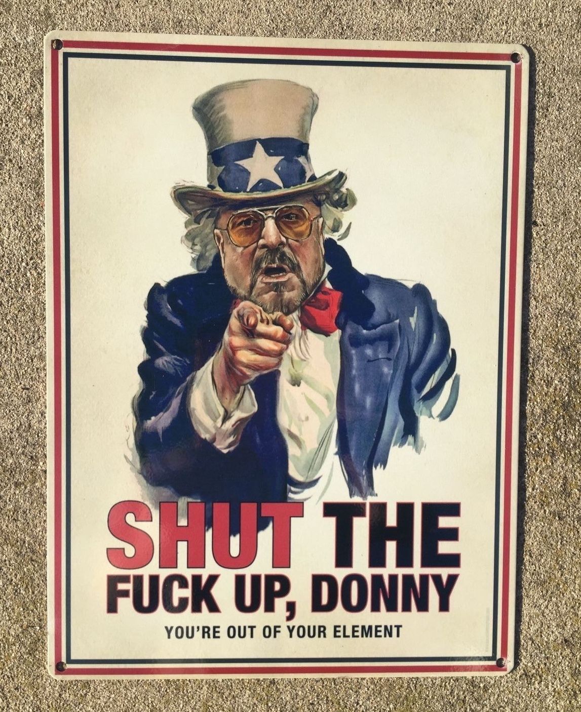 Title (ebay affiliate link): Shut The FU*K Up Donny Big Lebowksi Walter Sobchak Uncle Sam Trump Poster Sign