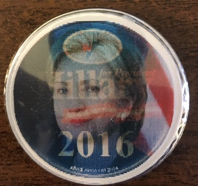 Title (ebay affiliate link): 2 1/4" Hillary 2016 Flasher Political Campaign Pinback Button