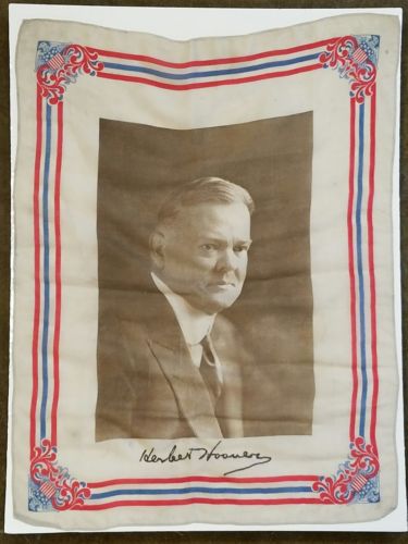 Title (ebay affiliate link): Vintage Herbert Hoover Large Silk Sepia Toned Signature Scarf with r/w/b Border