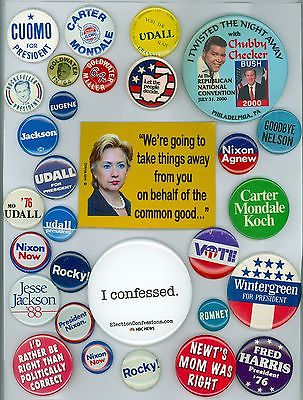 30 Vintage Presidential Political Campaign Pinback Buttons &1 Magnet- H. Clinton