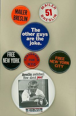 7 Vintage 1969 New York Mayor Norman Mailer Breslin Political Pinback Buttons