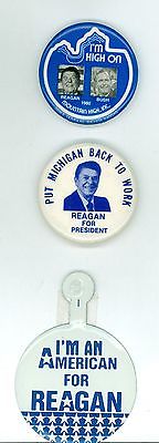 2 Vintage 1980 President Ronald Reagan Political Michigan Pinback Buttons &1 Tab