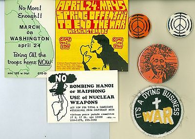 3 Vintage 60s-70s Peace Vietnam Anti-War Pinback Buttons Patch 3 Window Stickers