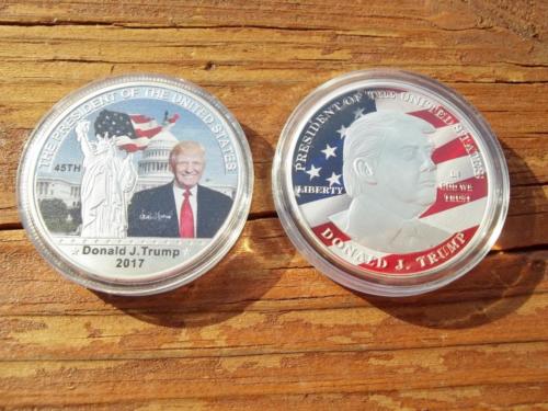 TWO DONALD TRUMP 45TH PRESIDENT COINS! MAKE AMERICA GREAT AGAIN USA FLAG LIBERTY