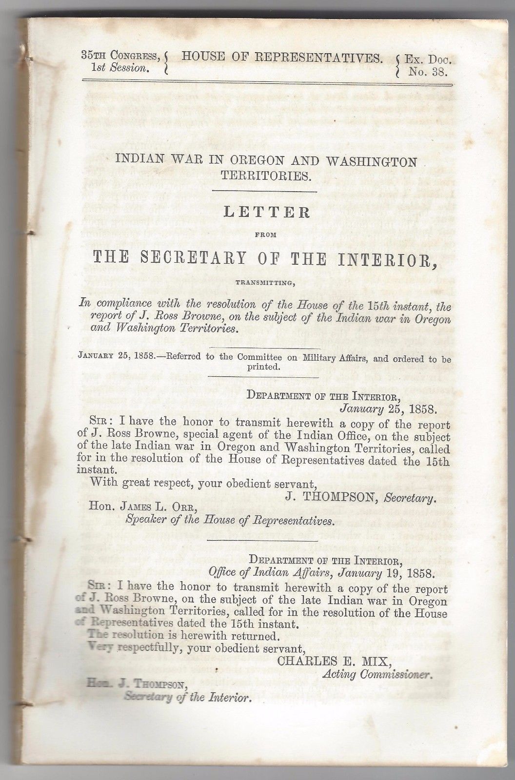 Title (ebay affiliate link): 2 1858 Reports Indian War and Affairs in Oregon and Washington Territories