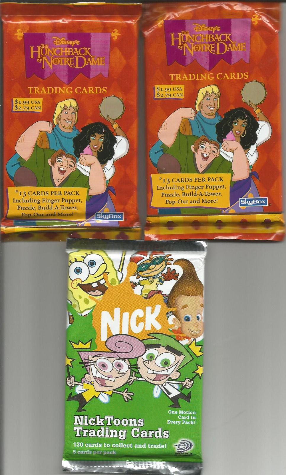 Disney/NickToons (3) Trading Card Pack Lot...Hunchback of Notre Dame, NickToons