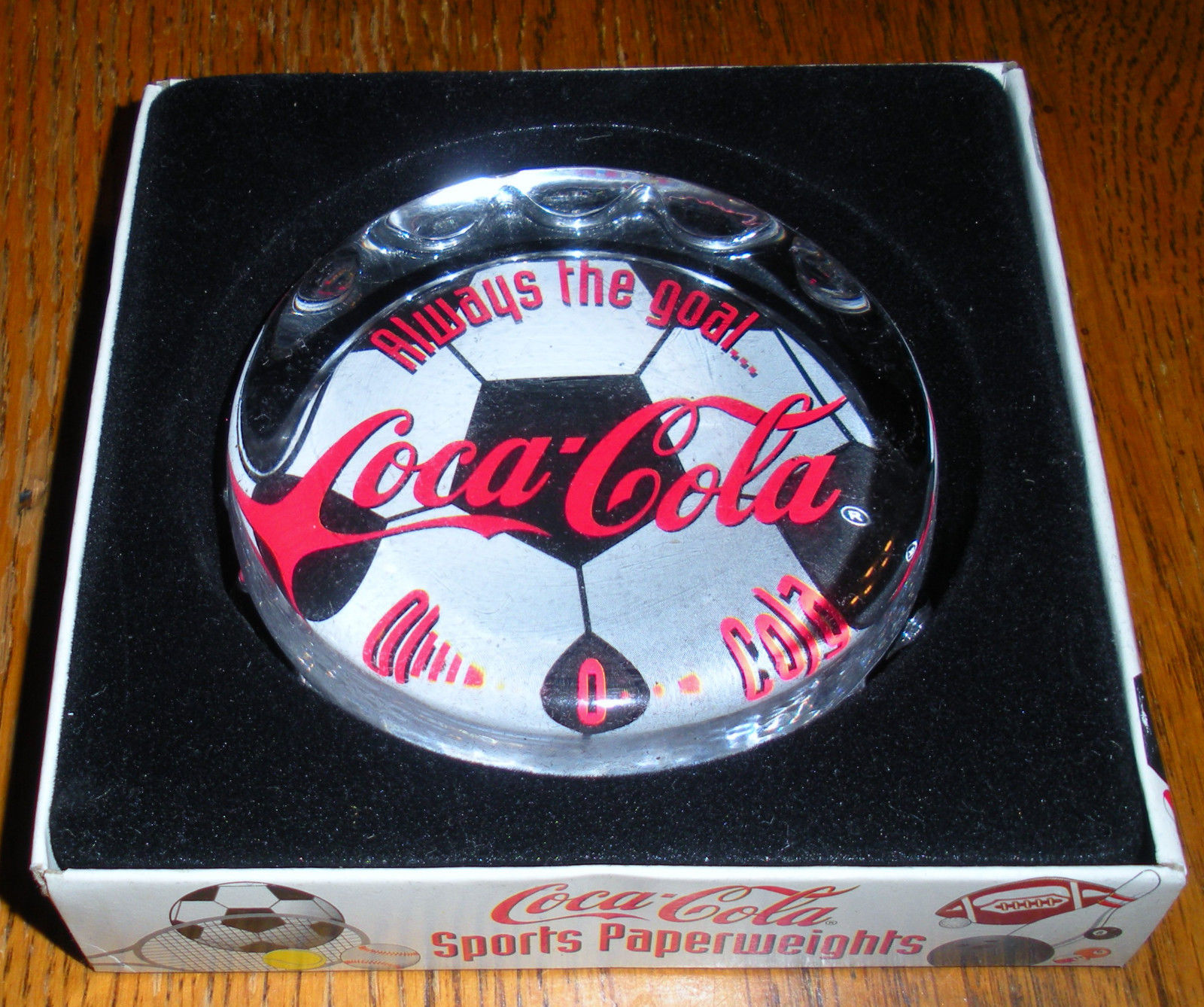 Title (ebay affiliate link): Vintage Coca-Cola Sports PaperWeight "Always The Goal~Always Coca-Cola" NIB~1997