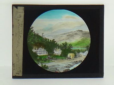 Vintage Magic Lantern Glass Slide Color "Majestic Mountains Peaceful Scene"