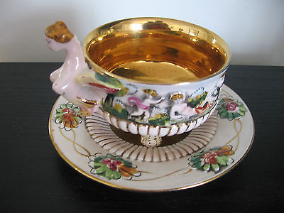 CAPODIMONTE ITALY 3 LEG NAKED WOMEN HANDLE TEACUP AND SAUCER