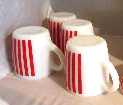 Title (ebay affiliate link): LOT OF 4 Vintage Hazel Atlas Milk glass RED & WHITE CANDY STRIPE Cups / Mugs