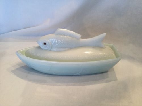 Milk glass Fish Dish