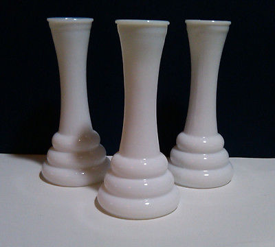 Title (ebay affiliate link): Vintage White Milk Glass Bud Vases Set of Three - 6" Tall - 3 Rings