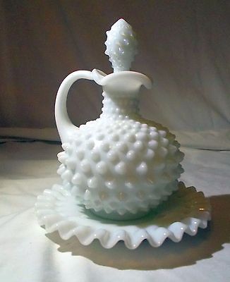 Title (ebay affiliate link): Vintage Fenton Milk Glass Hobnail Pitcher With Stopper and Saucer Base 1950''s