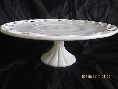Vintage Milk Glass Pedestal Cake Stand/Pastry Plate Colony Glass Lace Edge