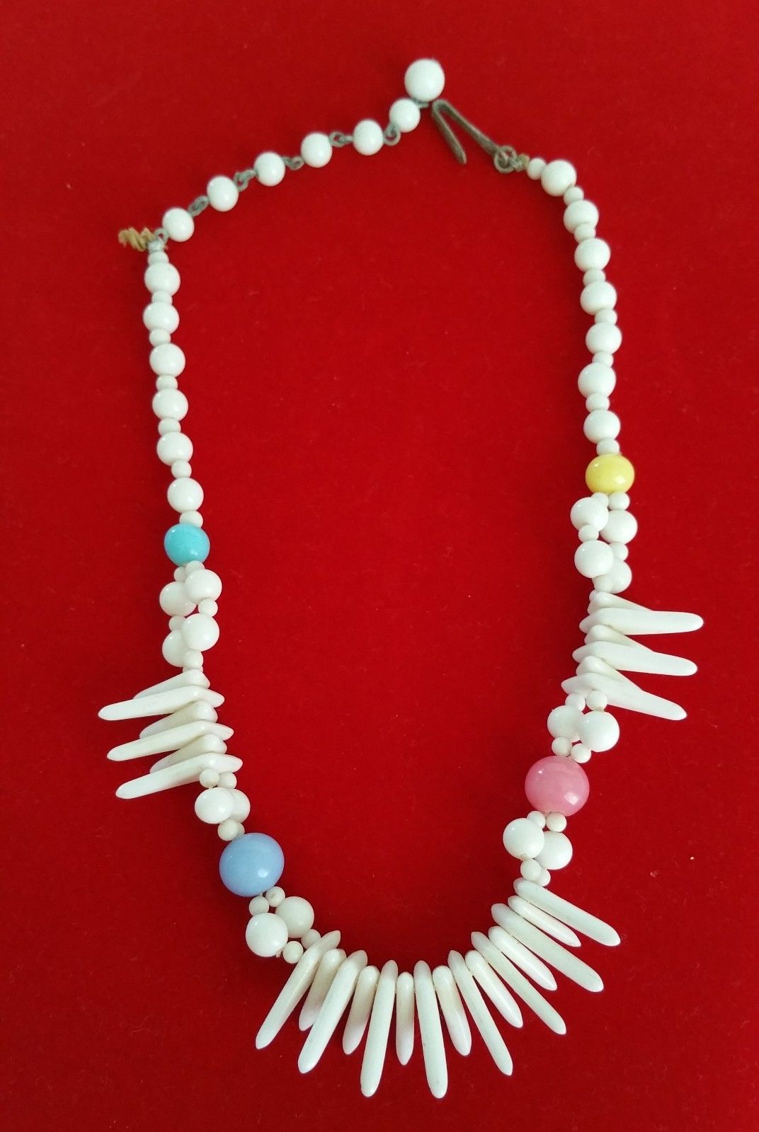 Vintage Milk Glass spikes blue pink glass bead necklace Japan