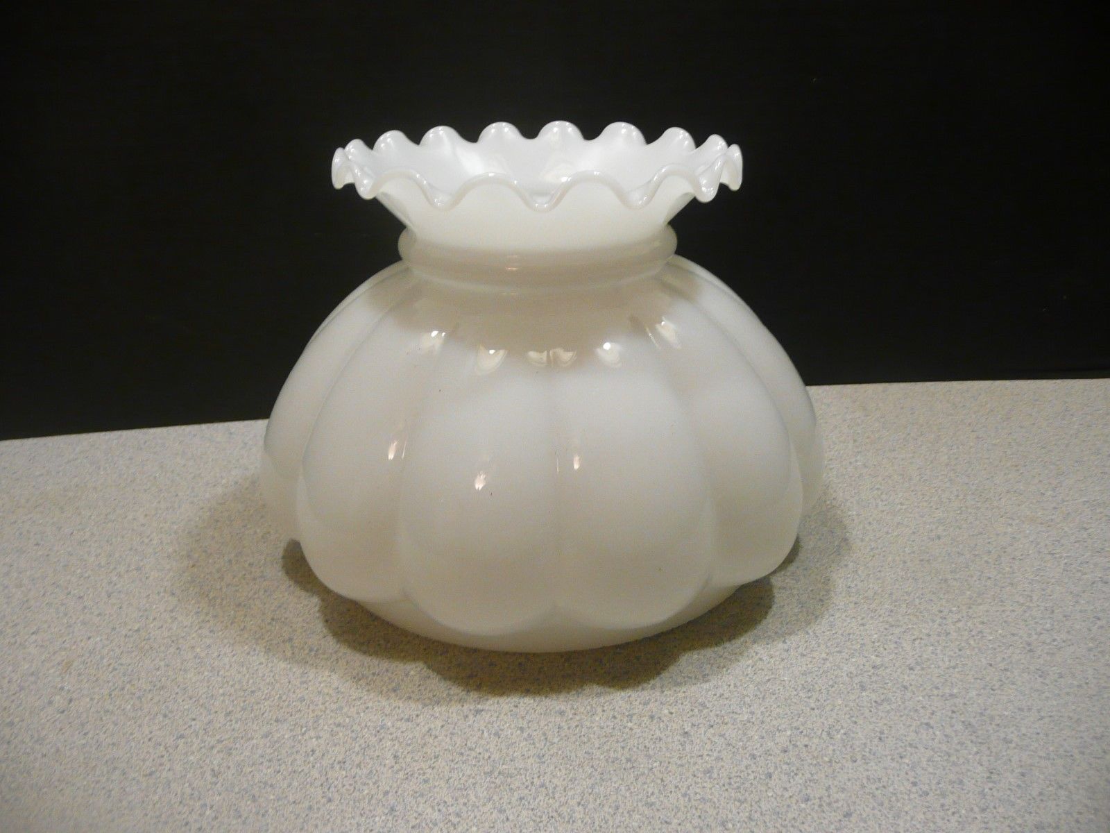 vintage 6 3/4" Fitter milk glass kerosene Oil student Lamp Shade melon