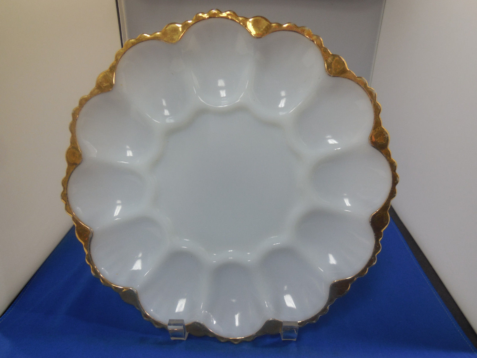 Title (ebay affiliate link): Vintage Anchor Hocking Fire-King White Milk Glass/Trim w/Gold Deviled Egg Plate!
