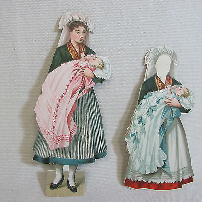 PN- 2 original Victorian Edwardian era double sided paper doll dolls cut outs