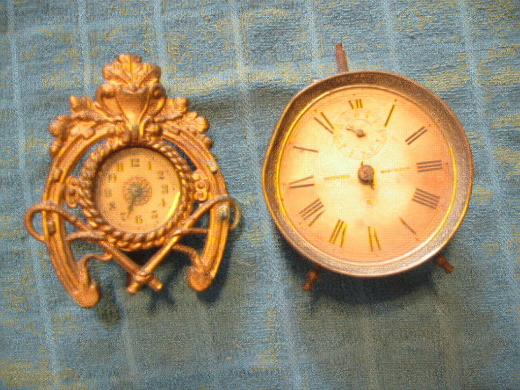 Antique Ornate Gilt Horseshoe Clock & Old Alarm Clock Estate Sale Find
