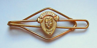 AUTHENTIC, 1932 FDR TIE BAR CLIP w/TEDDY ROOSEVELT IMAGE, WH & HOAG XF (5 Pics)