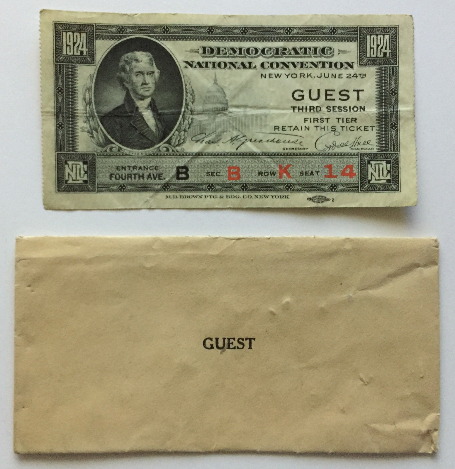 1924 DEMOCRATIC NATIONAL CONVENTION PRESIDENT ku klux klan DELEGATE TICKET COVER