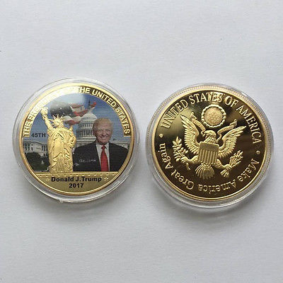 Title (ebay affiliate link): Donald Trump Coin Make America GREAT 45th President Liberty White House Gold PM