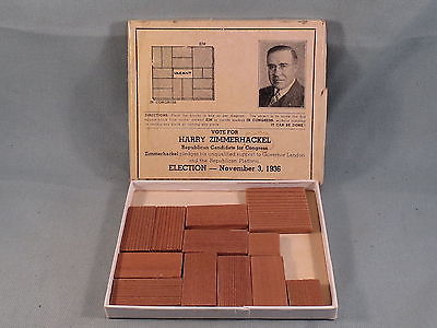 Vintage Calibron 12 block puzzle, Harry Zimmerhackel, Republican, Election 1936