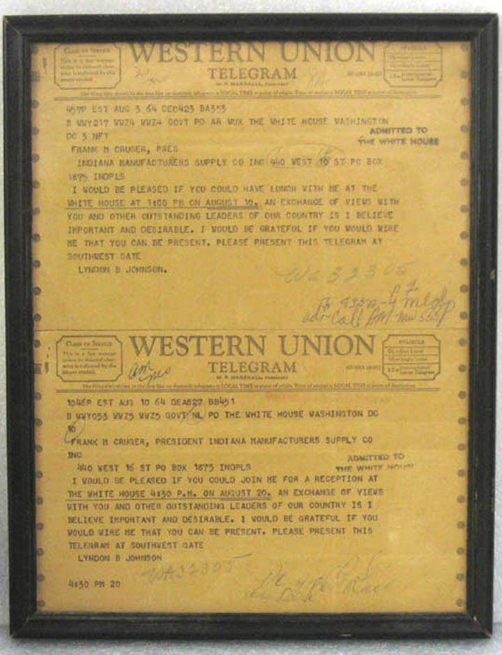 LYNDON B JOHNSON LBJ 36TH U.S. PRESIDENT WHITE HOUSE WESTERN UNION TELEGRAMS