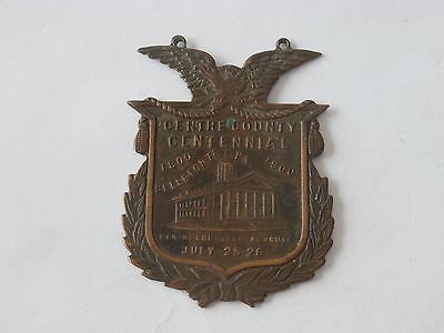 Vintage Antique Brass Bronze 1900 Centre County PA Centennial Badge Charm Fob