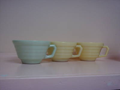 VINTAGE MILK GLASS FIRED ON COLOR TEA CUPS