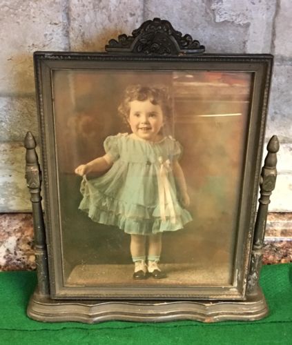 Title (ebay affiliate link): VINTAGE Desk Top Tilting 8" X 10" Picture Frame With Old Photo Of Little Girl.