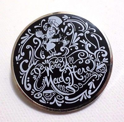 Title (ebay affiliate link): MAD HATTER Tea Party Disney Alice in Wonderland black and white sketch pin