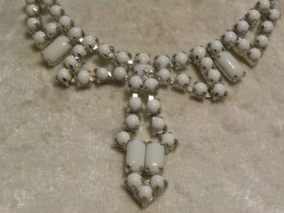 GORGEOUS VINTAGE BOW SHAPED, MILK GLASS NECKLACE