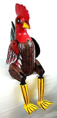Vintage Wood Carved Rooster Hand Painted Folk Art Statue Chicken Shelf Sitter
