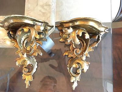 VINTAGE ITALIAN FLORENTINE GOLD TOLEWOOD SCONES MIRRORED PAIR