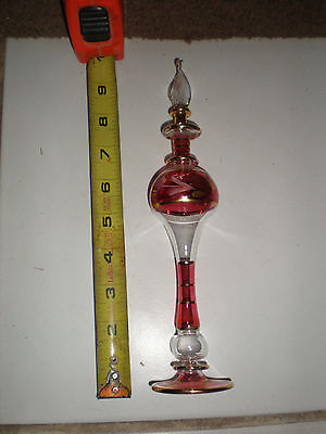 Vintage DeVilbiss ? Etched Cranberry Color Ruby glass Perfume Bottle VGC