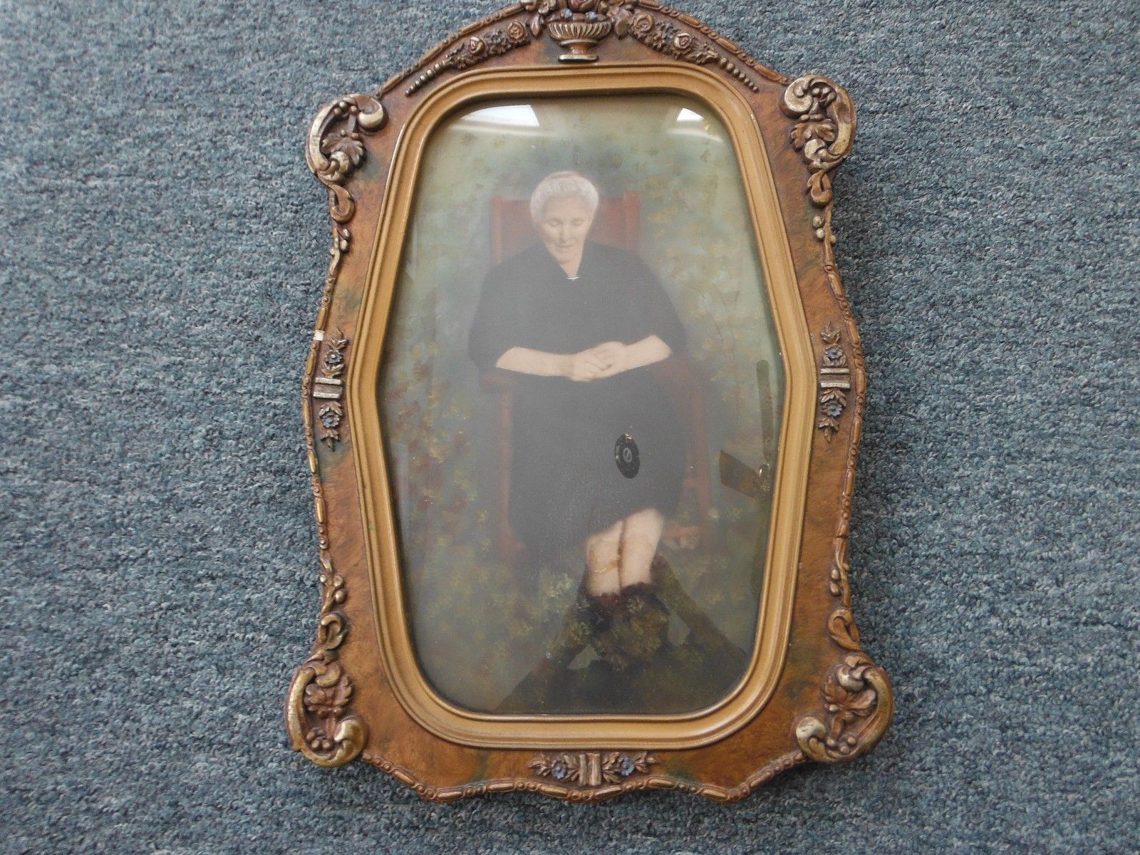 ANTIQUE CURVED GLASS MOURNING PORTRAIT