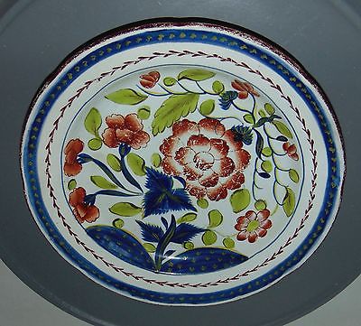 ANTIQUE PRIMITIVE Plate STICK WARE Flower COBALT BLUE