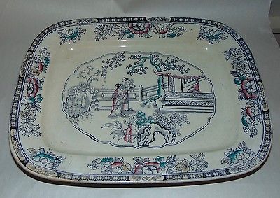 Title (ebay affiliate link): ANTIQUE C1840 IRONSTONE "CHINESE PATTERN" Victorian CHINOISERIE LG. PLATTER