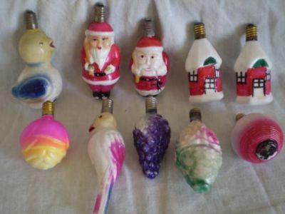 10 Vintage Figural Milk Glass Christmas Light Bulbs