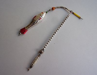 VINTAGE Czechoslovakia GLASS BEADED FISH ON A FISHING ROD CHRISTMAS ORNAMENT