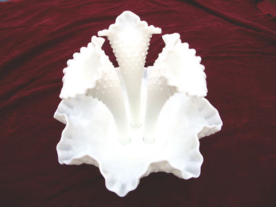 Milk Glass Trumpet Flower Epergne Hobnail Fenton?.