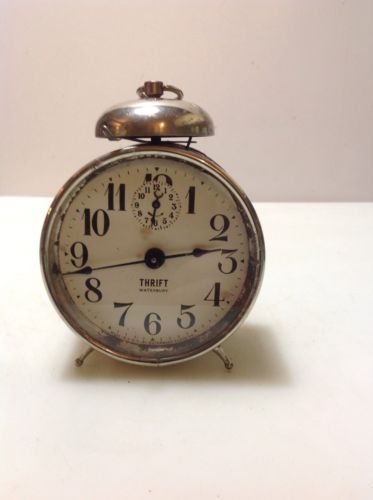 Antique, Waterbury, "Thrift" peg leg alarm clock.