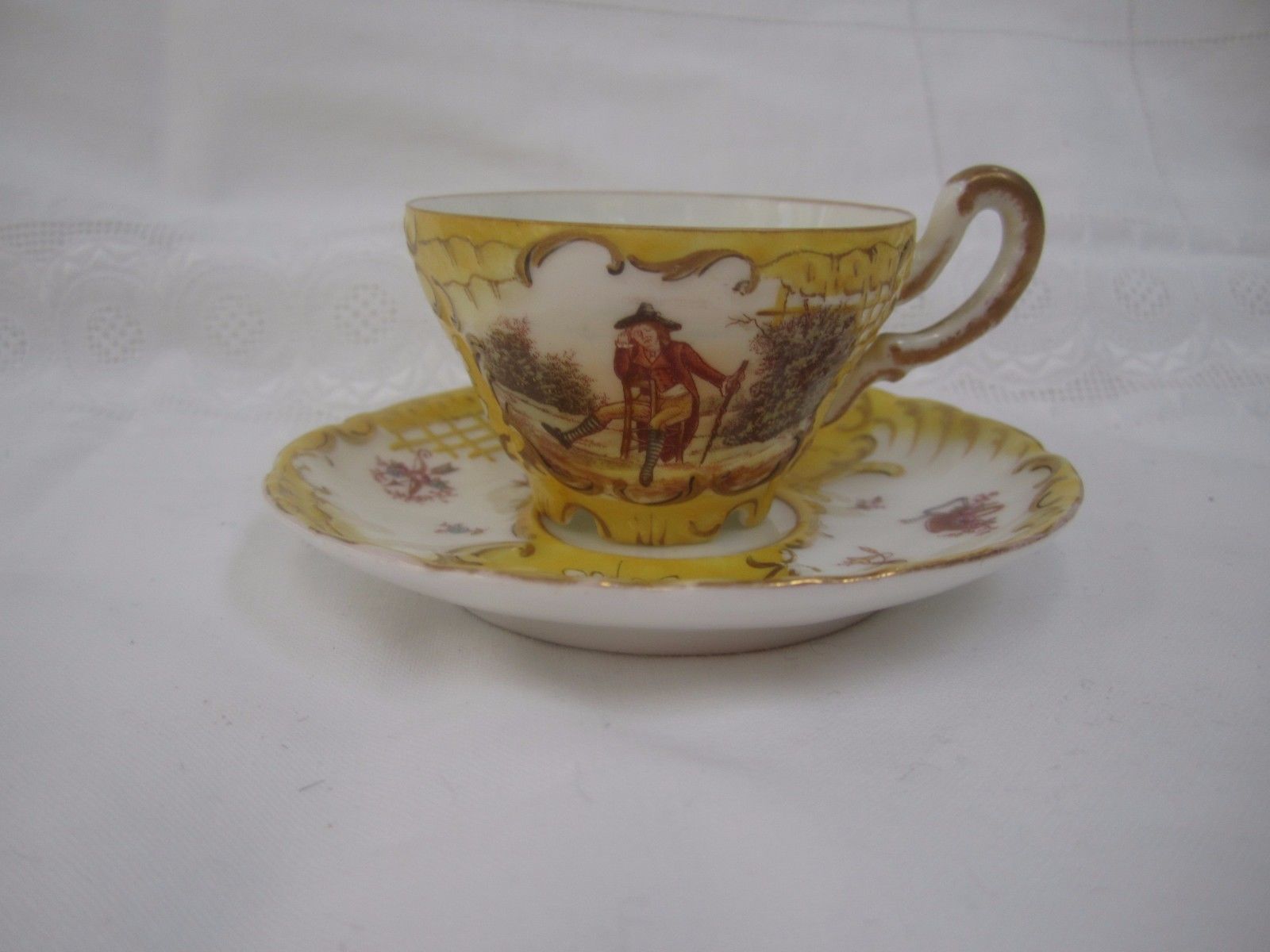 Vintage Yellow and Gold Demitasse Cup and Saucer Ovington Bros. Silesia Germany